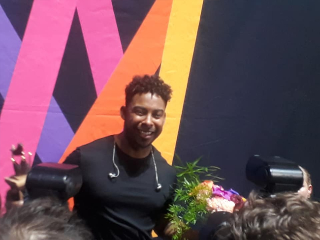 Mellan repetitionerna hade vi även en inbokad intervju med Mohombi som vi fick prata med under en av pauserna i repetitionerna. Eller snarare hade vi tur att det blev en paus just när intervjun var 🙂 Intervjun gick jättebra och vi tycker båda att Mohombi var en av de härligaste personerna som vi fick intervjua.